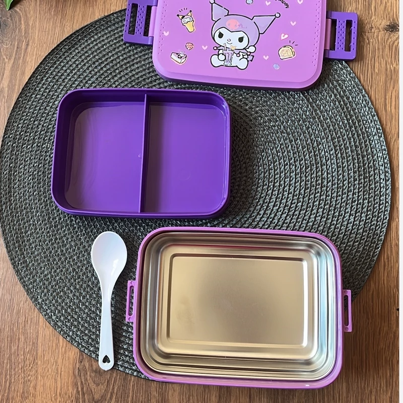 طرف غذای دوطبقه کرومی که داخل طبقه اول استیل هست و به همراه یک قاشق تقدیمتون میشه مناسب استفاده مدرسه و مهد و مسافرت و …