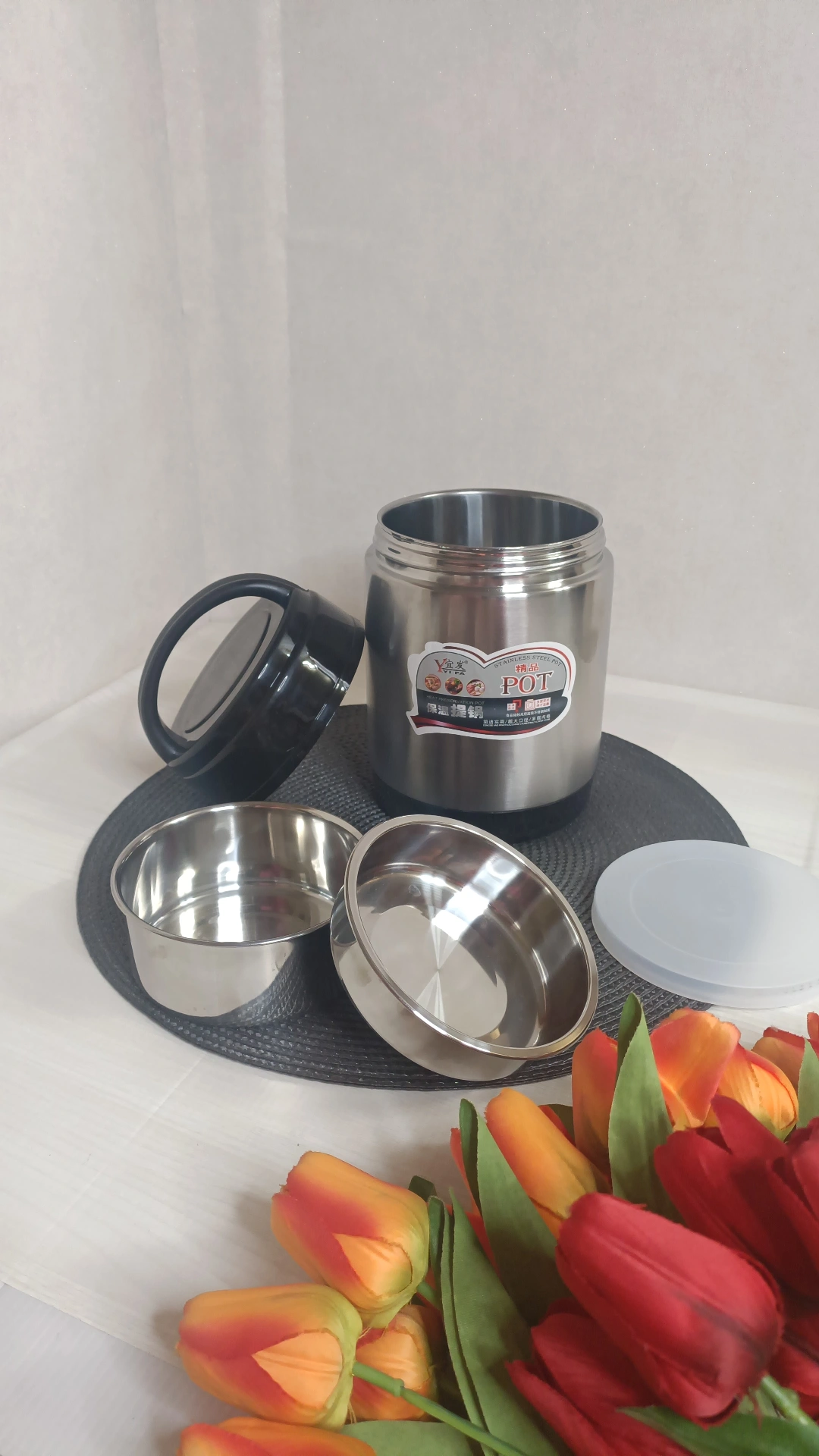 دارای دو طبقه استیل که به هیچ عنوان غذاهای هر طبقه با طبقه دیگر مخلوط نمیشه